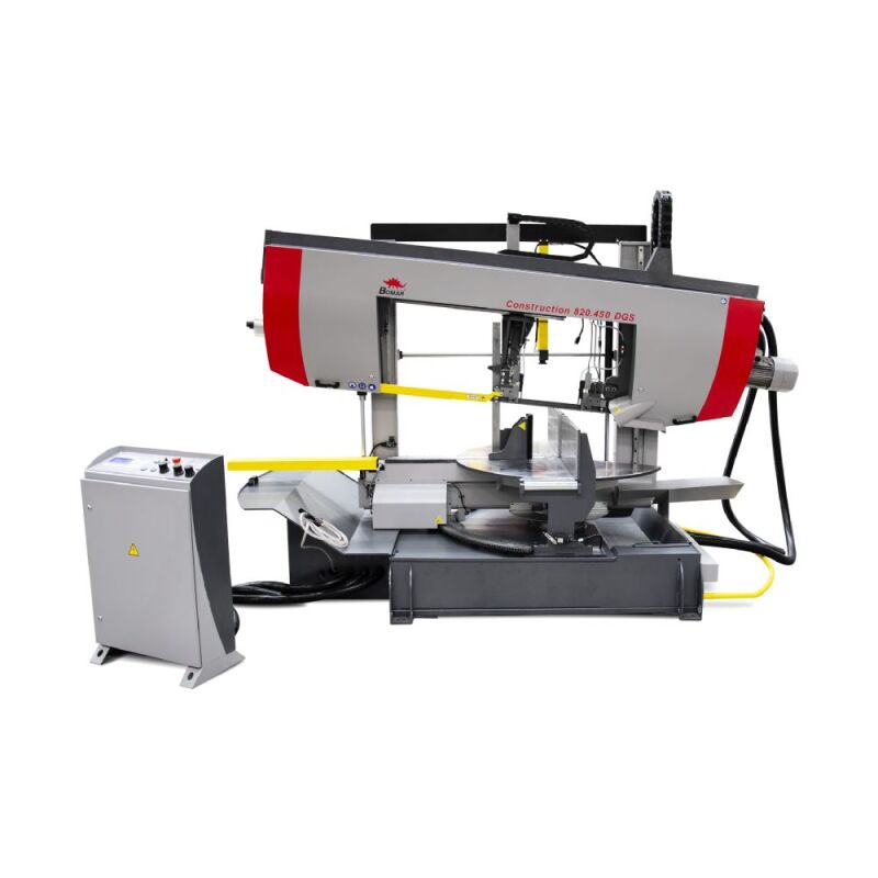 Construction 820.450 DGS je sloupový hydraulický poloautomat speciálně navržený pro dělení ocelových profilů a nosníků, umožňující oboustranné úhlové řezy až do šedesáti stupňů.