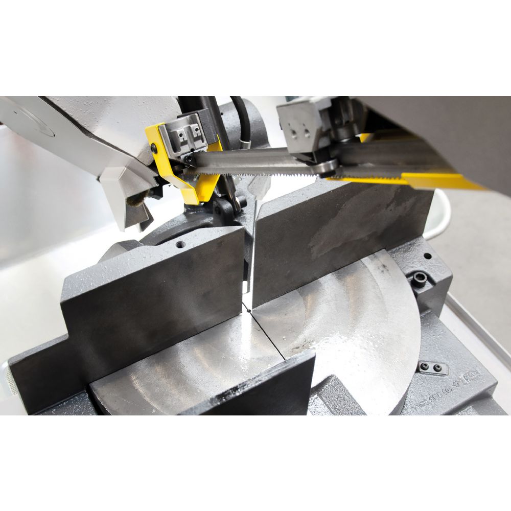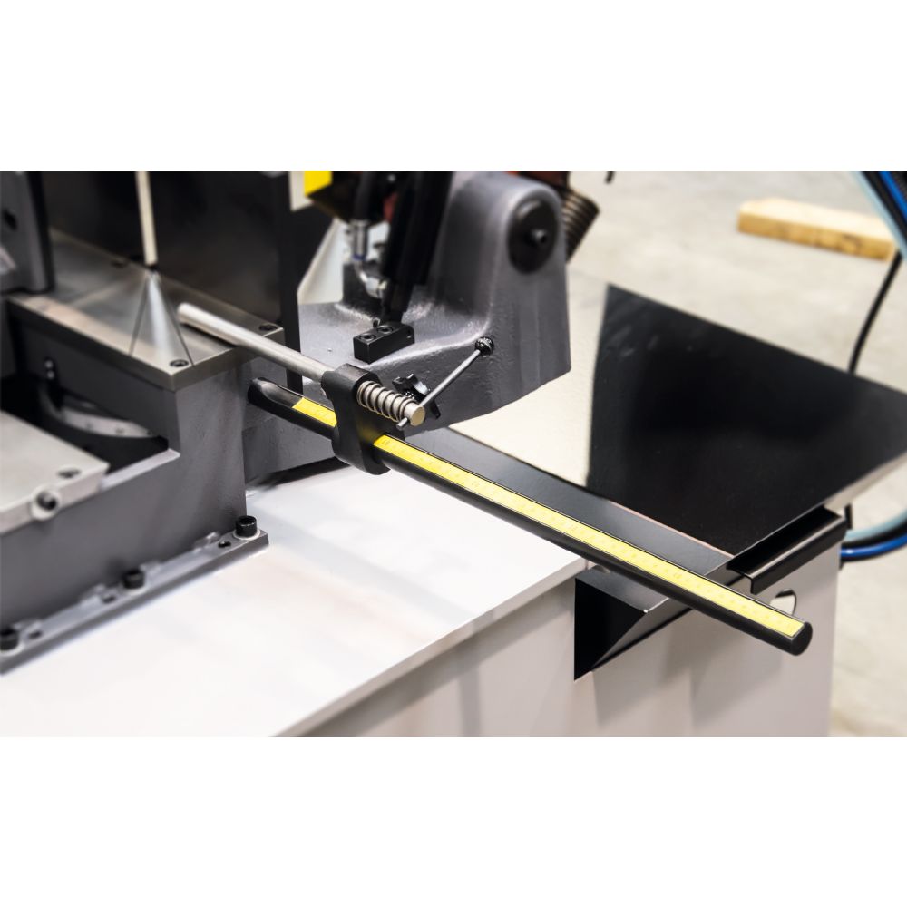 Díky oboustranným řezům do 60 °, lze provádět i komplexní řezy s vysokou přesností a úsporou času. Programování probíhá v jednoduchých krocích, díky grafickému znázornění jednotlivých sekcí je zajištěn jasný přehled ve všech krocích. Stroj umožňuje vertikální upnutí materiálu vlevo nebo vpravo od pilového kotouče. Otočná deska stolu snadno a rychle připravý stroj pro požadovaný úhlový řez. Řezaný materiál se pomocí válečkové dráhy přesouvá na řezný stůl.