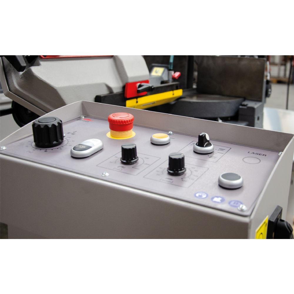 Gravitační pásová pila s robustním litinovým ramenem a pilovým pásem vysokým 27 mm. Stroj je vybaven velkým otočným stolem, který je dobrým podkladem i pro zpracování krátkých kusů materiálu.