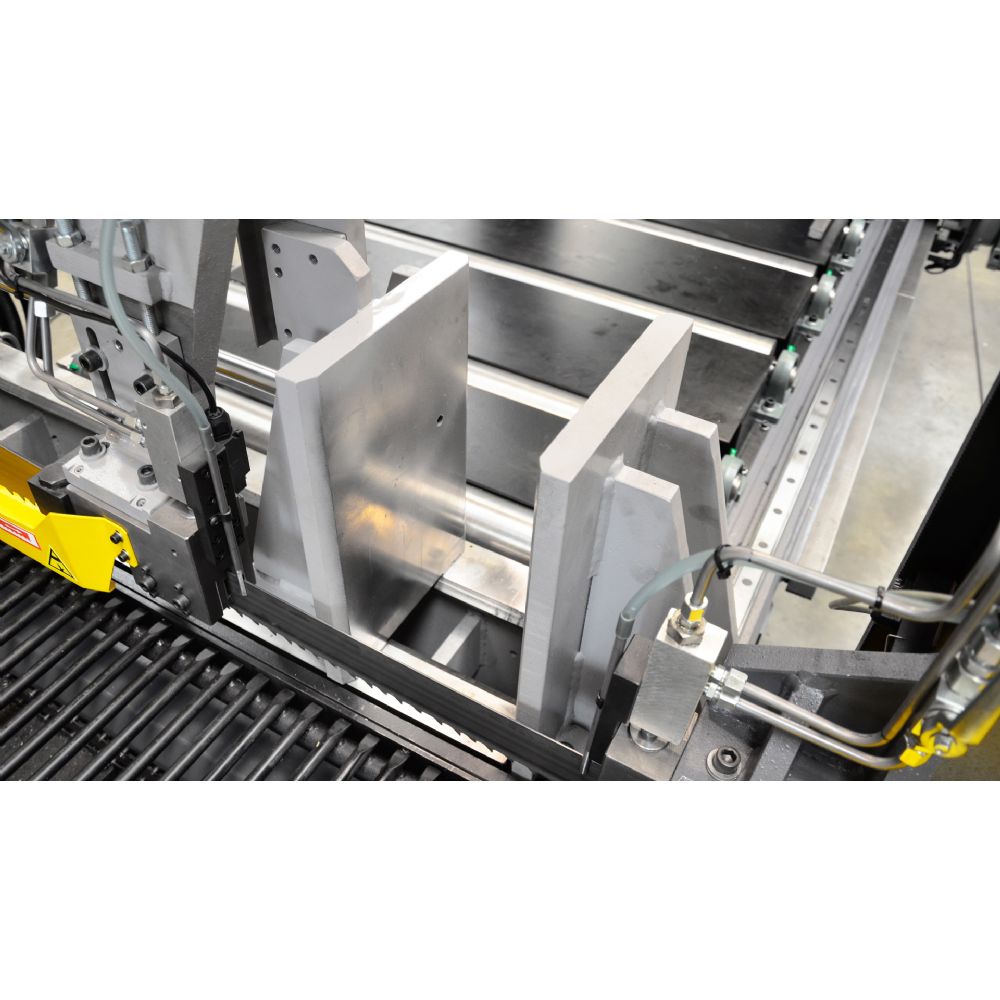 Hydraulický upínač svazků materiáluZařízení pro upínání svazků umožňuje upínání materiálu ve vrstvě a ve svazku pomocí přídavné vertikální upínací jednotky.