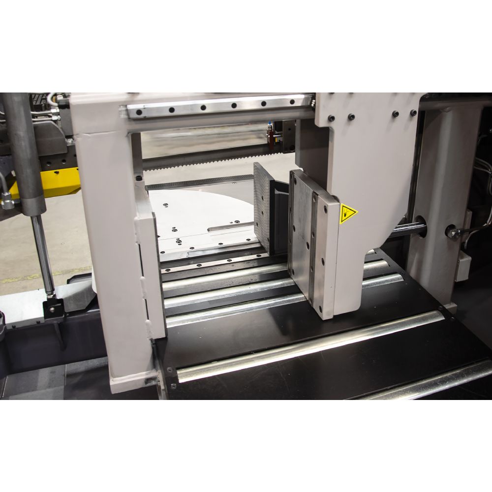 Ke standardnímu vybavení stroje patří automatická regulace přítlaku pilového pásu do řezu v závislosti na odporu řezaného materiálu. Dále je pila vybavena plynule nastavitelným posuvem ramene do řezu.