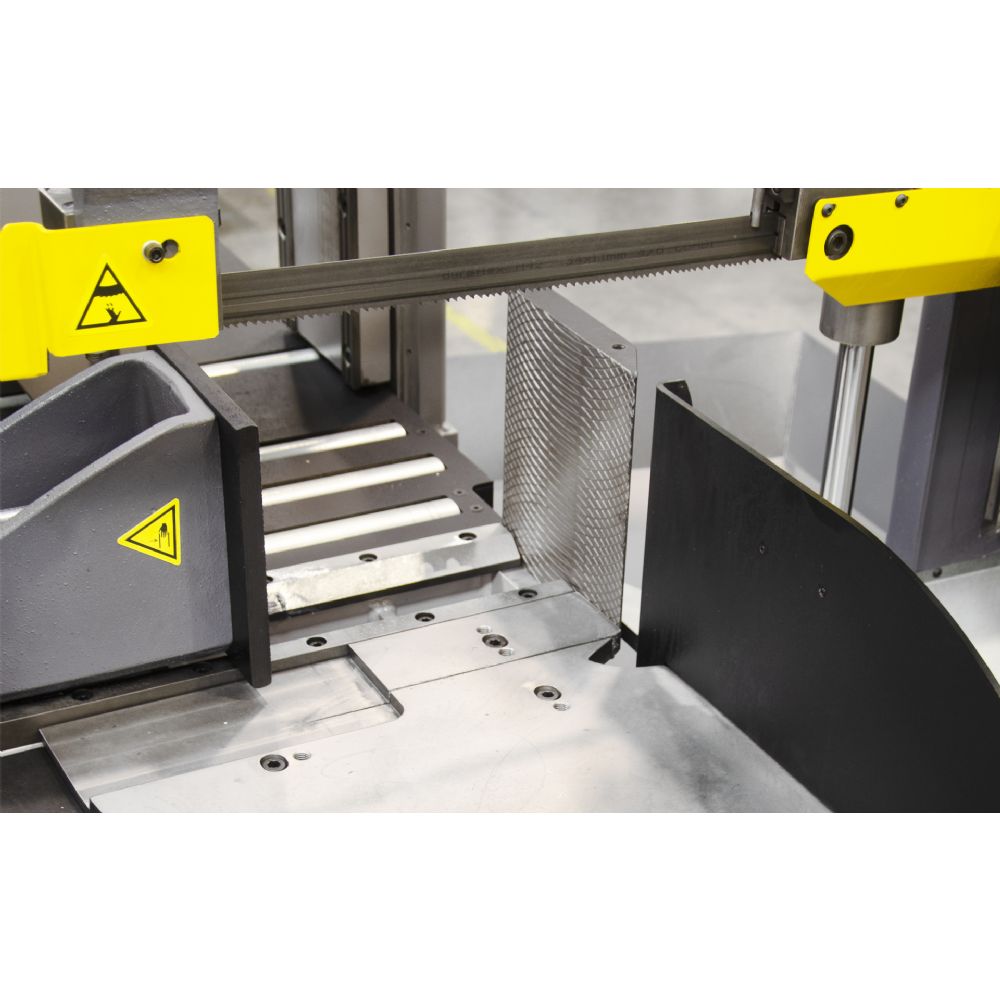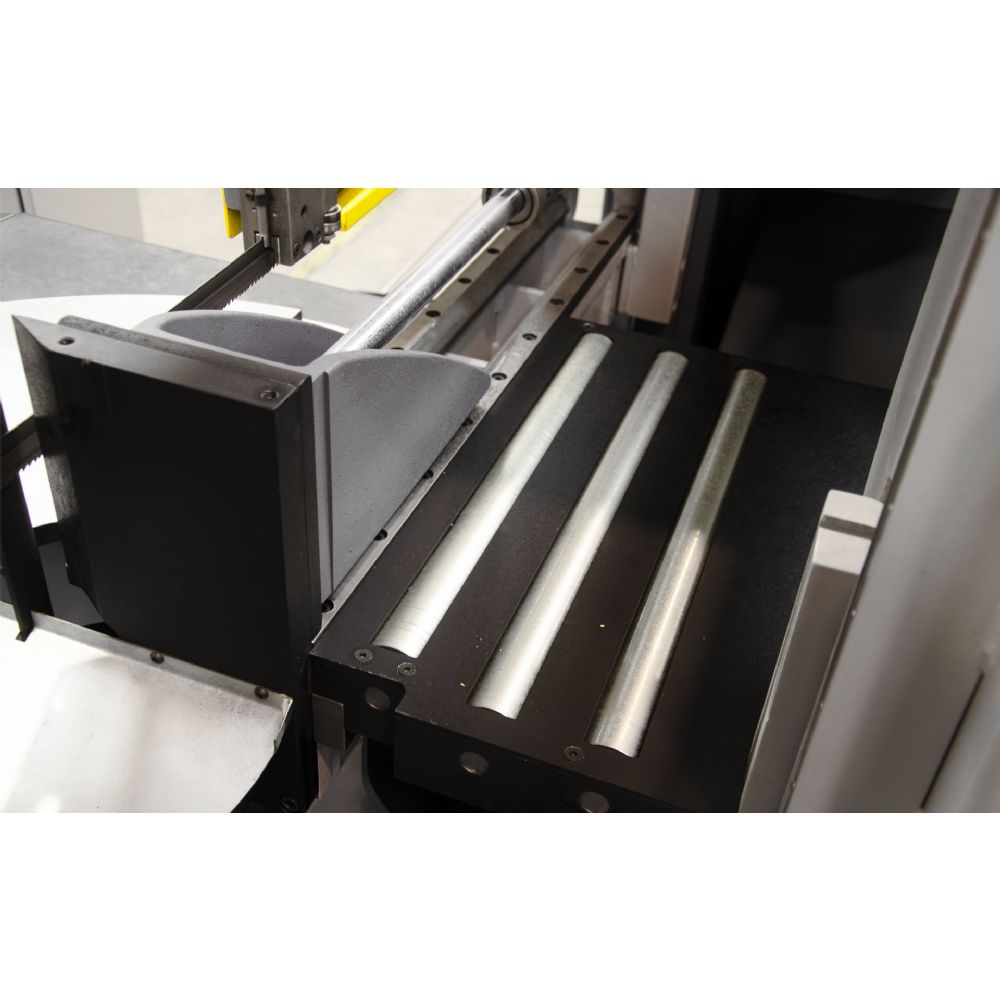 Přesné třístranné tvrdokovové vedení pilového pásu, rameno pily uložené oboustranně na předepnutých lineárních vedeních, 34 mm vysoký pilový pás a synchronně běžící kartáč na odstraňování třísek jsou předpokladem pro vynikající řezný výkon tohoto stroje.