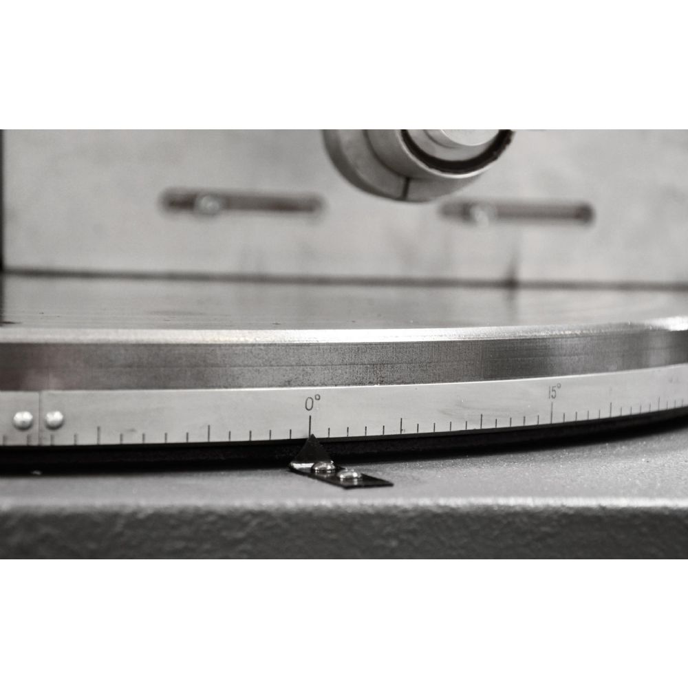 Rychlost řezu je regulována přepouštěcím ventilem, který je umístěn na hlavním ovládacím panelu. Přehledná a dobře čitelná úhlová stupnice je umístěna na přední straně stolu. Chlazení je umístěno v podstavci stroje. Pilu lze jednoduše připojit k odsávacímu zařízení.