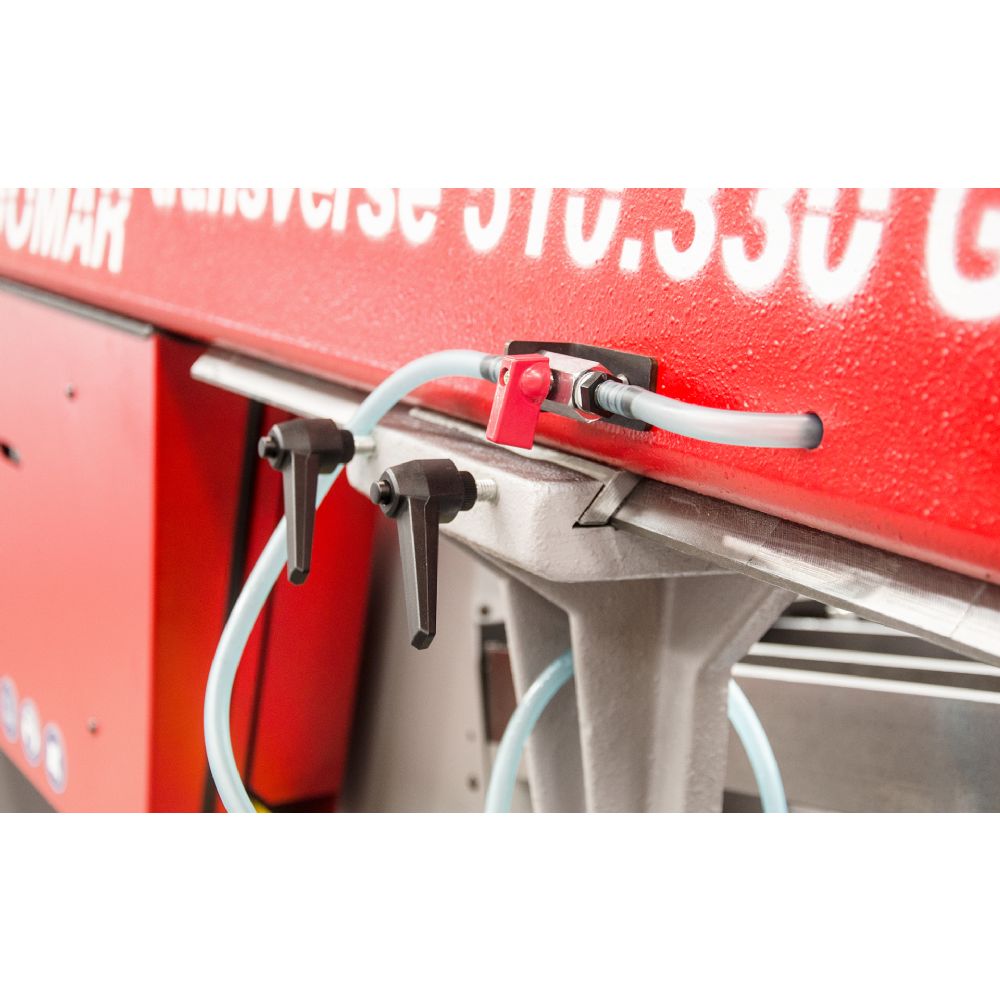 Pro plynulé řezání trubek a profilů, nanáší mikro-ostřikovací jednotka mazací film na hroty zubů a boční strany pilových pásů.Micro-spray-systémPro plynulé řezání trubek a profilů, nanáší mikro-ostřikovací jednotka mazací film na hroty zubů a boční strany pilových pásů.