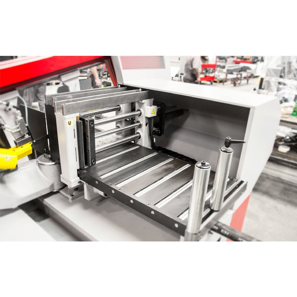 Předností stroje jsou doplňky ve standardním provedení, jako je digitální ukazatel natáčení ramene, zobrazovač rychlosti pásu měněné frekvenčním měničem, zapamatování přednastavené polohy ramene a svěráku po řezu a nebo automatická změna rychlosti klesání ramene do řezu v závislosti na tvaru materiálu.